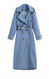 Detailing: Double breasted front, belted waist, epaulettes, ans stirm flap